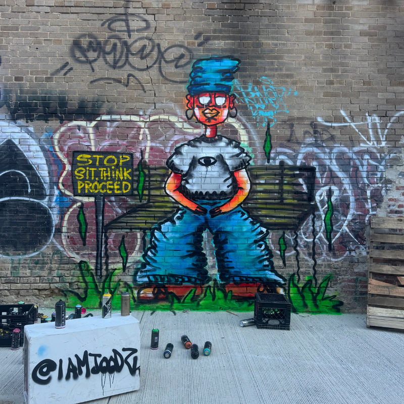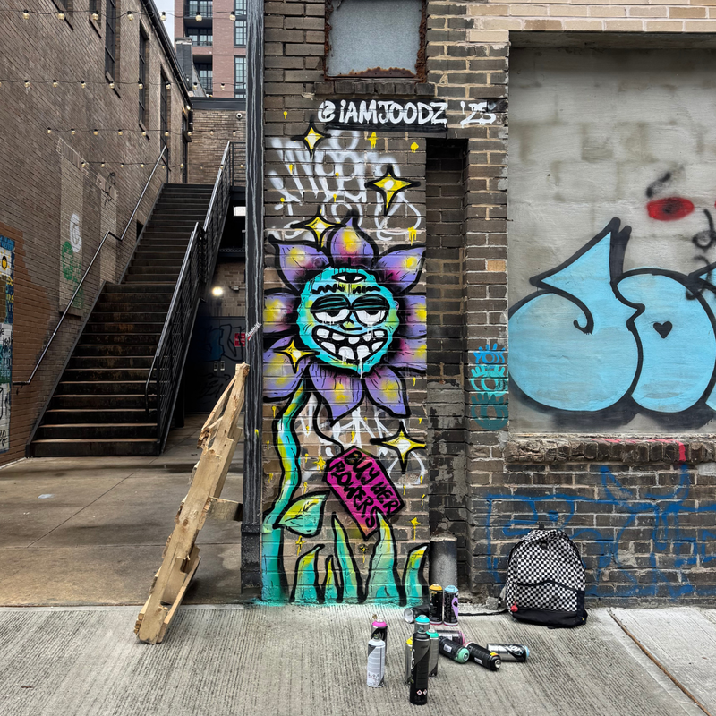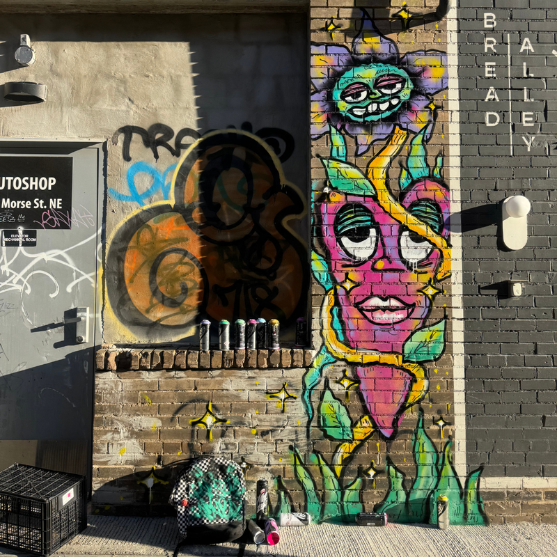 This project was commissioned by Second Son Tattoo in Washington, DC, as a custom mural created specifically for their studio space. Designed to complement the shop’s identity and atmosphere, the work blends bold color, expressive characters, and street-influenced aesthetics. The mural serves as a visual anchor within the space, contributing to an environment that celebrates creativity, individuality, and self-expression.